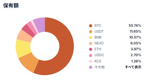 アルトコインバブル?があったみたいでBNBとNexoの割合が上がっていました。